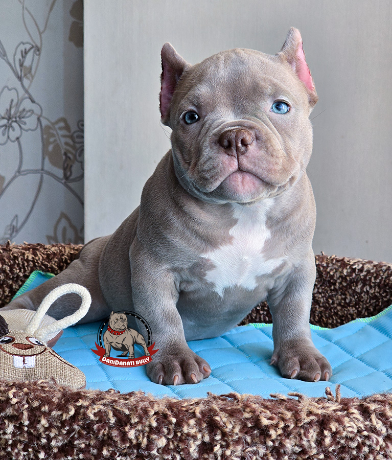 Девочка красоточка Американский Булли в лиловом окрасе в типе Микро.