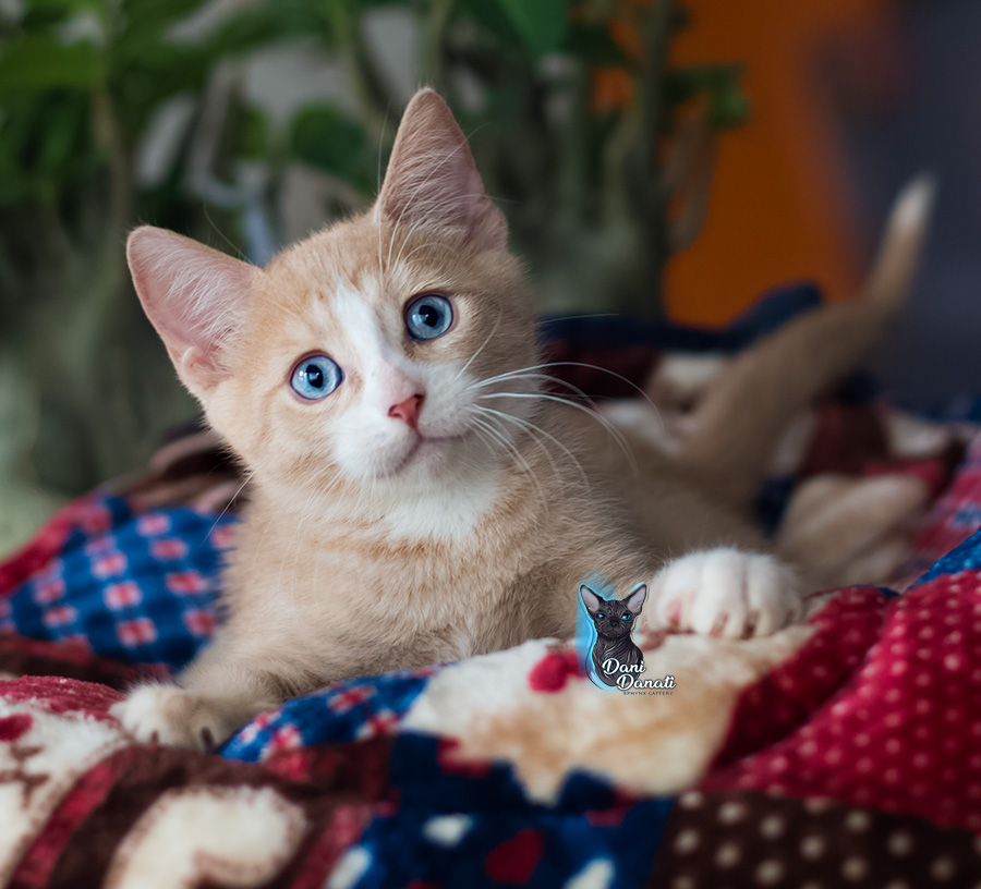 Мальчик 4.5 месяца, ппрограмма Доминантные и разные глаза (ДГГ,ДPГ), - Голубые глаза на цветном окрасе, Канадский Сфинкс Ф3.