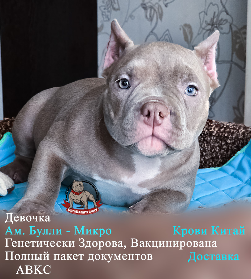 Шикарная Девочка Американский Булли в лиловом окрасе в типе Микро.