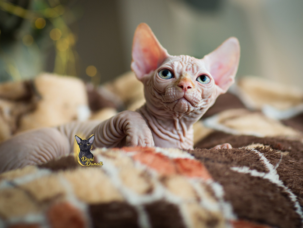 Малыш Сфинкс - Рыжее солнышко, котенок в современном типе, безумно обаятельный, ручной, ласковый, забавный. Возраст 2,5 месяца.